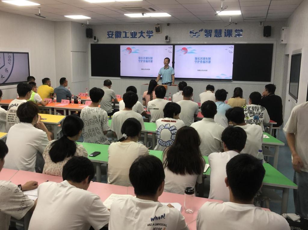 党委书记、关工委主任张虎,院党委副书记、纪委书记、副院长、关工委副主任王颖之,市水利局河长制工作科科长、市民间河长联合会督导常敬佩,市民间河长联合会副秘书长董磊,花山区社会组织联合会各级组织负责人,学院团委书记、团委副书记、辅导员以及部分学生代表参加。仪式由院团委书记崔余龙主持。