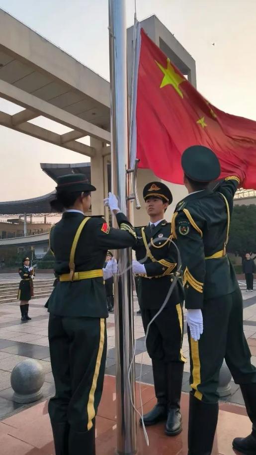 院团委书记崔余龙,学生干部、学生代表240余人参加活动。迎着清晨的朝阳,国旗护卫队队员们迈着整齐划一的步伐,守护着鲜艳的五星红旗走向升旗台。广场肃静,伴随着激昂的国歌声,五星红旗迎风展开,缓缓升起。
