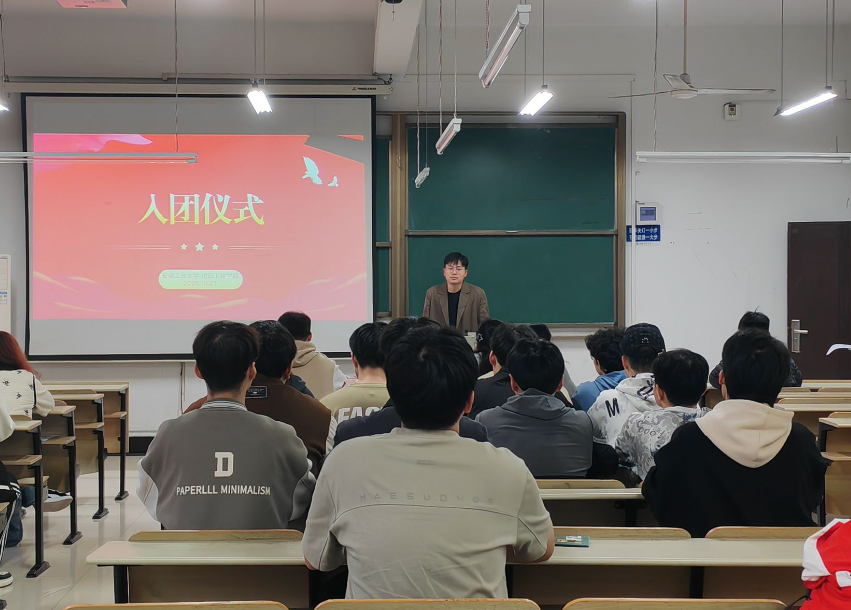 随后,由院学生会组织部赵嘉怡同学宣读新团员名单,由李昊南同学带领全体新团员进行入团宣誓。在鲜艳的团旗下,新团员们郑重地举起右手,庄严宣誓,表达了他们对共青团组织的无限忠诚和为团组织事业奋斗的坚定决心。