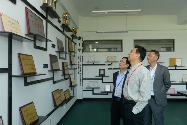 院长黄志甲汇报了学院基本情况和评估(认证)工作,专家组就自评报告有关问题向专业负责人及学校有关人员提问。会后,专家组成员分3组进行实地考查,第一组在校长为魏先文的陪同下,先后考查了校振华图书馆和机械楼(力学实验室);第二组在副校长葛芦生的陪同下,考查了逸夫楼(物理实验室)和电气楼(电工实验室);第三组进行了听课考查。最后集体考查了工程实践与创新教育中心、水力学实验室、专业基础实验室、通风除尘实验室、溶液除湿实验室、制冷实验室、空调末端实验室、自动控制实验室、燃烧实验室、空调与热泵实训室,并查看了建工学院图书资料室和荣誉室。