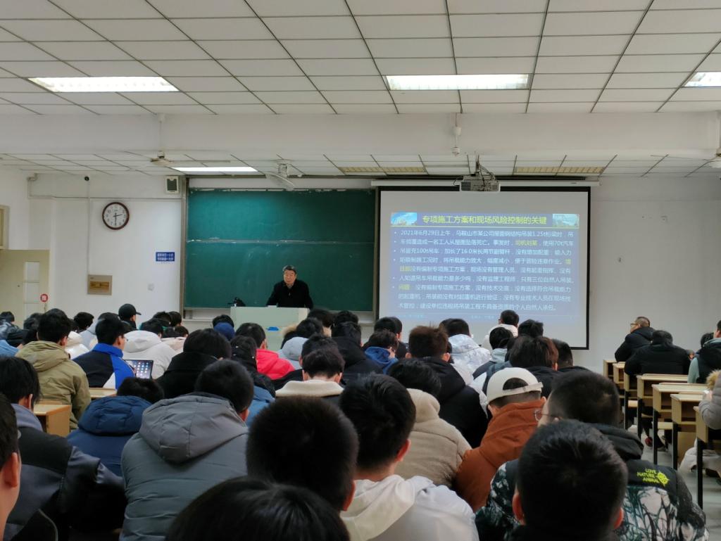 ,做题为“钢结构吊装关键性技术”报告,土木工程系部分教师和学生参加了学术报告会。