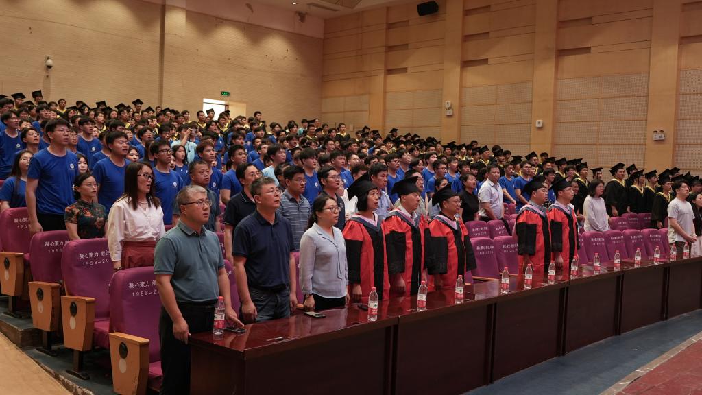 仪式在激昂的国歌声中正式开启。学院党委书记张虎对全体毕业生致辞,他寄语毕业生,要胸怀理想,勇攀高峰,成为建筑行业的佼佼者;要坚守初心,勇于创新,成为国家建设的栋梁之才;要脚踏实地,不断进取,成为实现人生价值的追梦人。