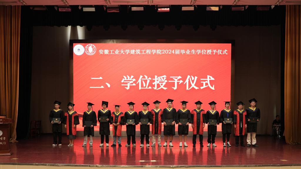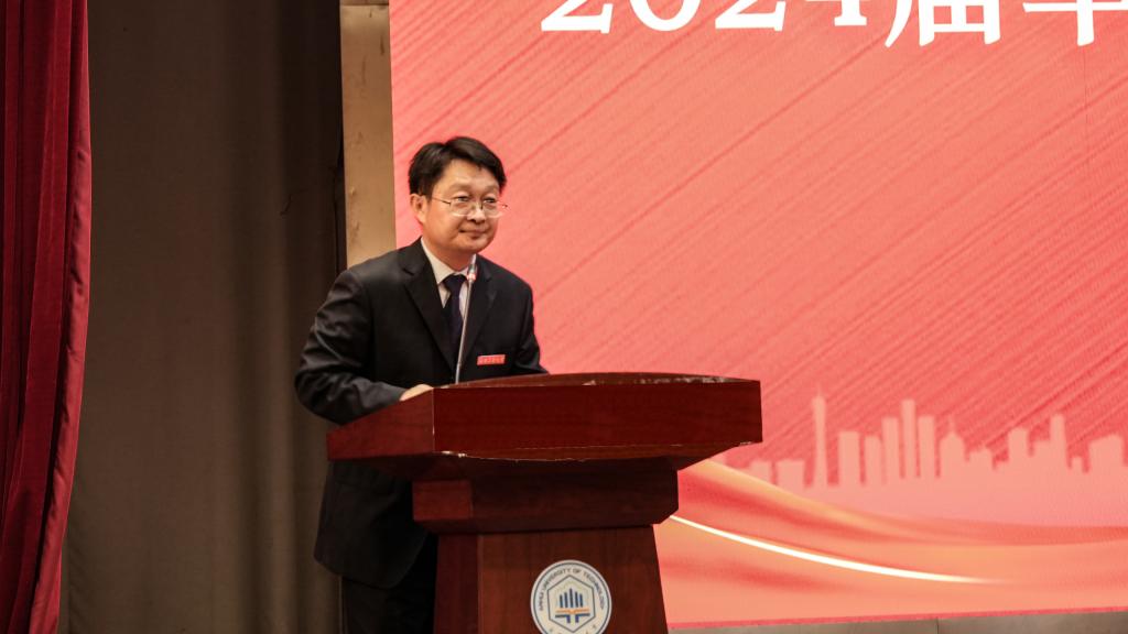 2024届毕业生学位授予仪式在秀山校区新大学生活动中心举行。学院党委书记张虎,党委委员、副院长吕忠,副院长方圆,以及学位评定委员会成员出席了仪式。各系主任、党支部书记、全体辅导员,以及2024届本科生、研究生和留学生共同见证了这一庄严时刻。