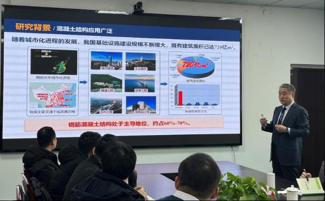 牛荻涛教授作题为“开展科学研究的体会”的学术报告。报告首先简要剖析提升混凝土结构耐久性的重要性,不仅延长结构使用寿命,还可节约资源、降低碳排放,是工程界最有效的减碳措施;随后,牛荻涛教授总结自己在混凝土结构耐久性方面30余年的科研历程,结合自身的经历从个人发展、面对机遇与挑战、如何运用工程学科思维等方面与参会教师进行交流。