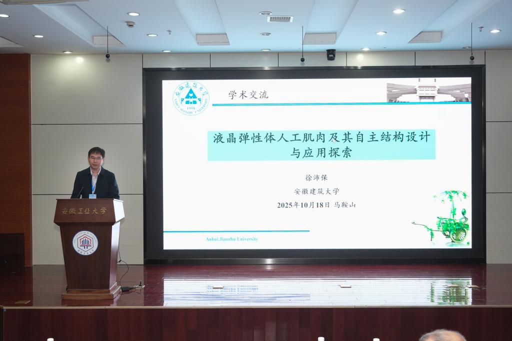 院长于峰教授、安徽省交通规划设计研究总院股份有限公司总工程师吴志刚、安徽理工大学蔡海兵教授、合肥工业大学孟增教授、安徽建筑大学徐沛保副教授分别作了《激波管设备研制与应用》《FRP 增强混凝土材料和结构》《马鞍山长江公路大桥全寿命周期建造关键技术创新与应用》《地铁隧道冻结法施工地层三维冻胀变形机制研究》《基于物理数据驱动的可靠性拓扑优化方法研究》《液晶弹性体人工肌肉及其自主结构设计》的报告。分会场研讨围绕“计算力学及应用”“固体力学及应用”“力学教学与人才培养”3个主题展开。