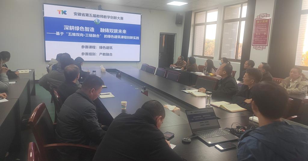 董伟老师以《深耕绿色智造 融铸双碳未来——基于“五维双向三链融合”的绿色建筑课程创新实践》为题目,为参加观摩老师深入剖析了参赛的全过程设计。分别从课程概况、课程痛点、课程目标、创新举措、创新成效、总结展望六个方面娓娓道来。董伟老师介绍基于新工科理念,结合建筑学学科特点,绿色建筑在课程内容上对“碳达峰、碳中和”和“绿色建筑全生命周期”提供重要支撑,该课程团队长期致力于绿色建筑教学研究,知识经验丰富,教学科研成果突出,工程实践经验丰富,为优秀教学创新团队,形成了对本课程的良好支撑。董伟老师提出“三进三出”合作机制、产业需求检测平台、目标-过程-成果三位评价模型的全新教学创新模式,构建“机制革新-动态迭代-质量闭环”三位一体的产教协同育人生态理念,通过这些先进教学创新理念融入课堂,为学生提供一个全新的专业视野,帮助他们成为未来的行业精英和社会栋梁。(撰稿:王小丽; 审核:张慧 门亮 吕忠)